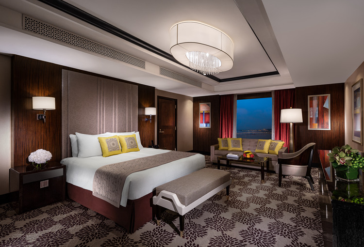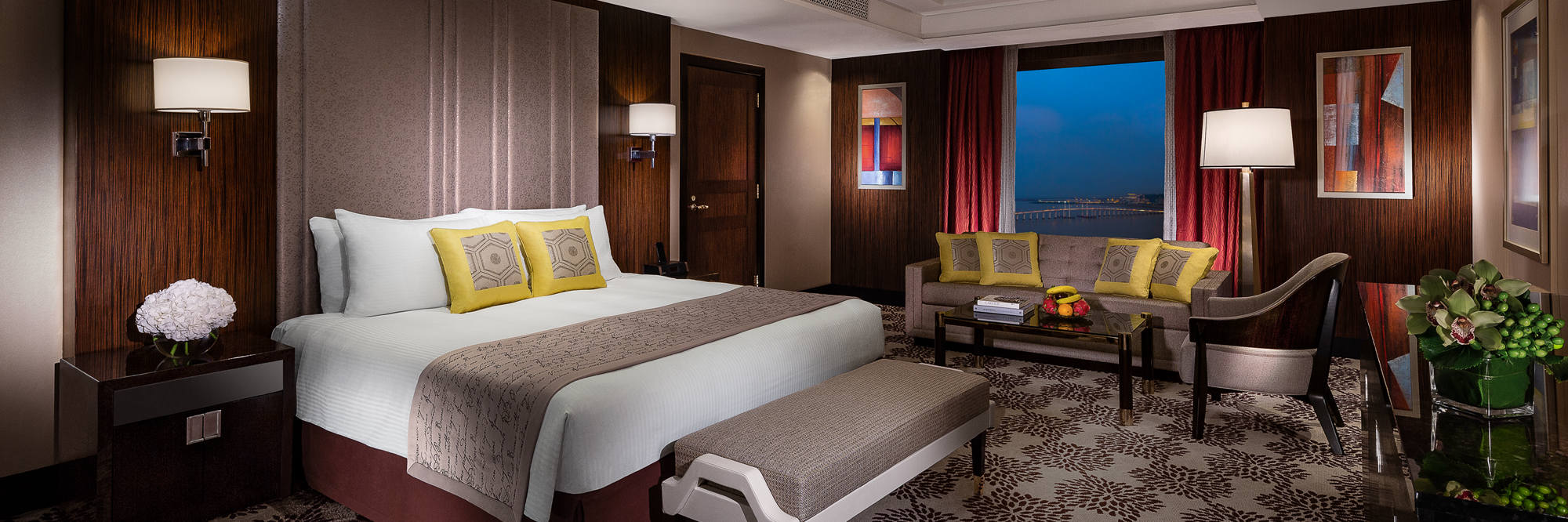 行政套房提供用餐區的客廳、獨立客廳和臥室、海景景觀、大理石浴室、獨立淋浴間、按摩池等尊享設施。