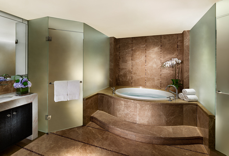 大理石浴室,設有獨立淋浴間及按摩浴池
