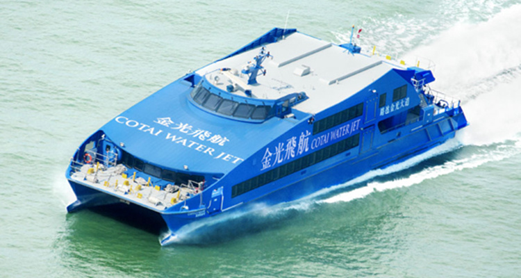 金光飛航提供往來香港與澳門之間的豪華高速渡輪服務, 航班往來香港上環(港澳碼頭)與澳門(氹仔臨時客運碼頭),航程約1小時。當您到達澳門時,即可乘坐免費穿梭巴士前往澳門金沙酒店。