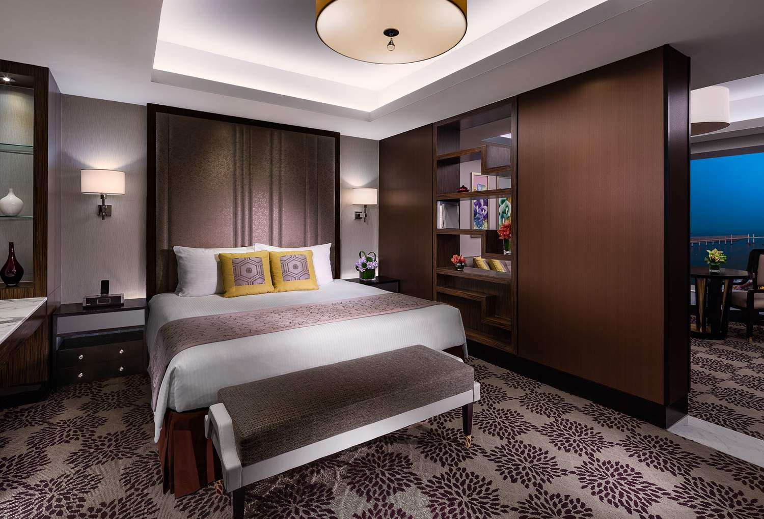 尊貴套房擁有一系列備受歡迎的特色元素,包括大理石浴室、獨立淋浴及按摩缸,部分套房更可欣赏海景。