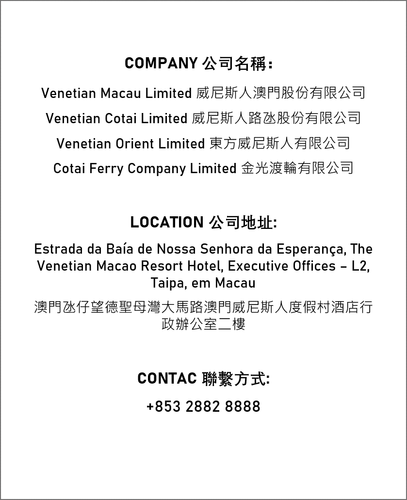 | 郵寄: | 威尼斯人澳門股份有限公司 |
